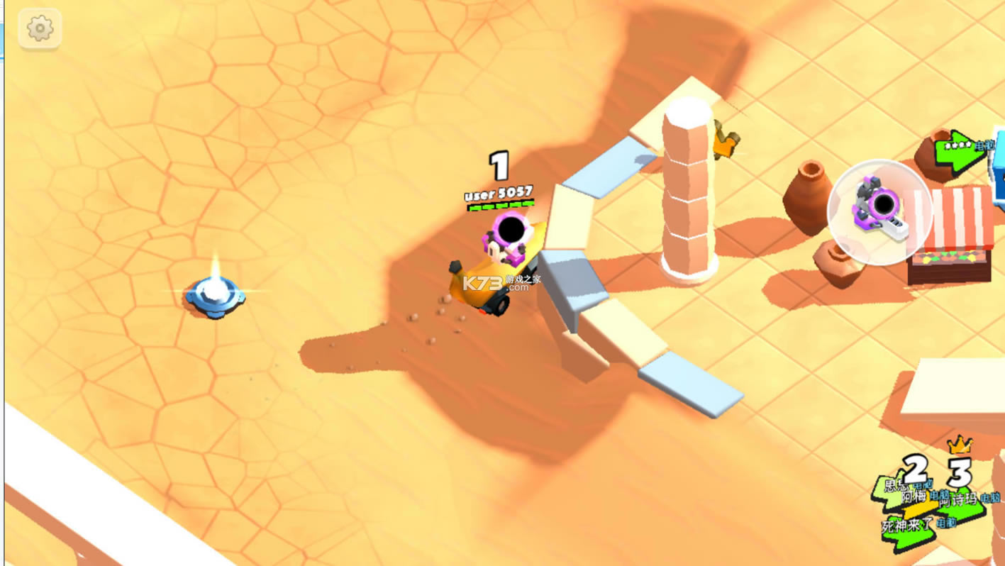 在游戏中,玩家要和对手展开刺激有趣的汽车碰撞大逃杀。不断吃下场景内的小皇冠,努力成为皇冠数量最多的王者!但同时要躲避来自敌人们的各种攻击!场景内有各种未知道具可以拾取,能够帮助你加速、投掷障碍、发射子弹等。