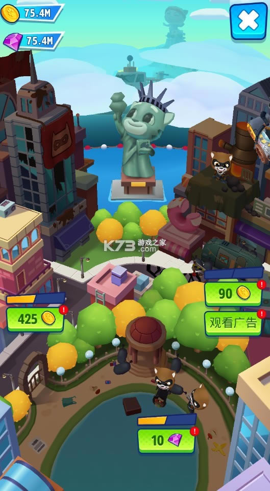 这是由“会说话的汤姆猫家族”IP团队重磅推出的,在此汤姆猫与和安吉拉将变身为超级英雄,它们需要跨过各种障碍,打败浣熊,拯救家族的小伙伴,最终赚取大量的金币与钻石,重建美好家园。游戏提供了开放城市、热带沙滩、中国古城、埃及等多个跑酷地图,玩家们需要在楼顶秋千、龙背和城市街头上跑酷,惊险不断,在游戏途中你还可以打掉多个坏猫猫的党羽,结束时可解锁新地域,当解锁了所有被坏猫猫控制的地方的时候,猫猫伙伴就被救出来啦。此外,汤姆猫雄跑酷游戏在其界面设计上采用多元素色彩相结合,与以往相比,画面上一改当初的单调风格,从而带给用户一个更好的游戏体验。以及在游戏中你还可以看到许多的道具,比如说粉色闪电,U型磁铁这样的道具,对于这样的道具,一定要看到就要吃上,好让自己的得分更加容易,走的更远。