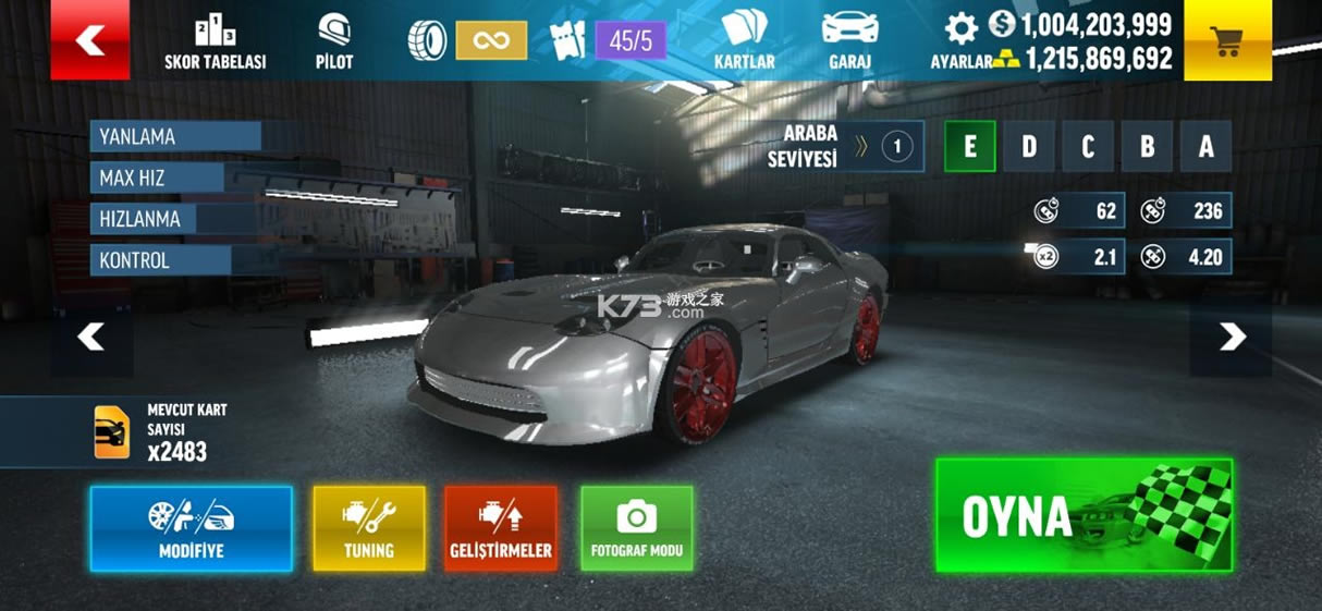 破解内容:1.免费购买游戏币(即使没有足够的游戏币,也可以购买汽车和自定义物品);2.购买的轮胎没有限制。