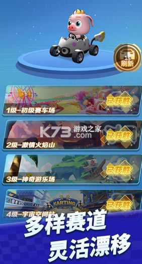 小猪漂移是一款玩法非常精彩的竞速赛车类游戏,游戏中的赛车类型非常丰富,赛道也非常多样化,可以打开不同主题的场景,