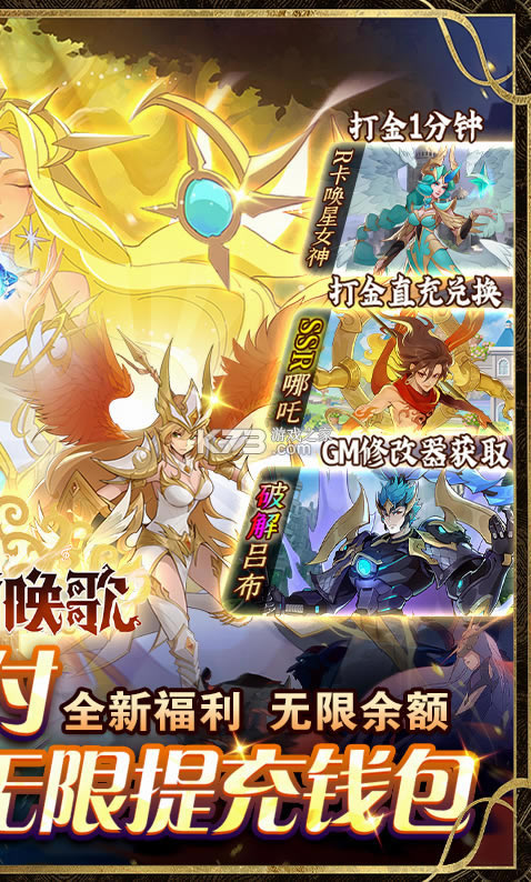 游戏西方神话故事为背景题材,精致的游戏画面,还有不同于简单的放置玩法,这款更具策略性,然后每一个十连都有保底,必出ssr卡牌,使用高福利的形式,给玩家提供最为畅快的游戏体验。
