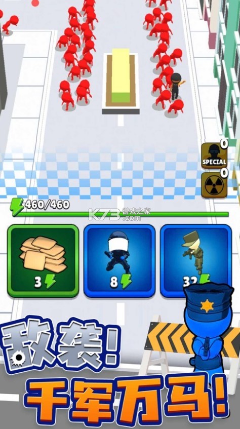在城市攻防道路上布置障碍,招募各式各样的战士!