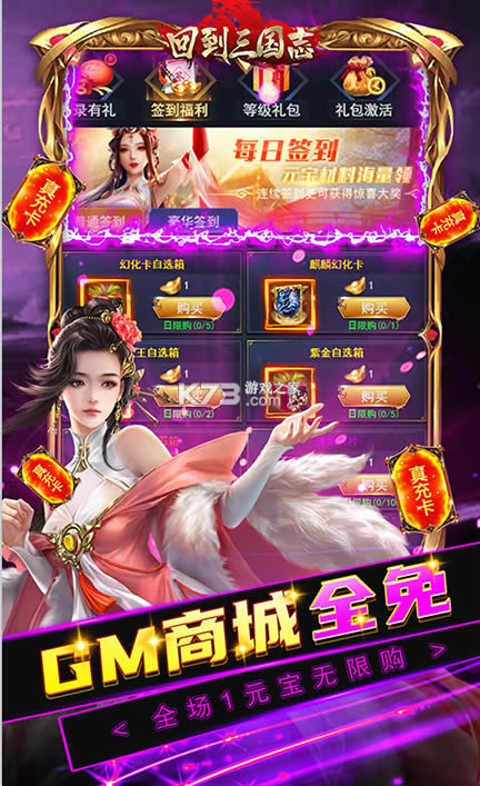 ★后缀说明:日常--活跃度宝箱,每天免费获得GM卡*10,100元真充卡*1,GM1特权-GM12特权商城全部免费白嫖开启!签到无限送真充,可激活所有累充活动!
