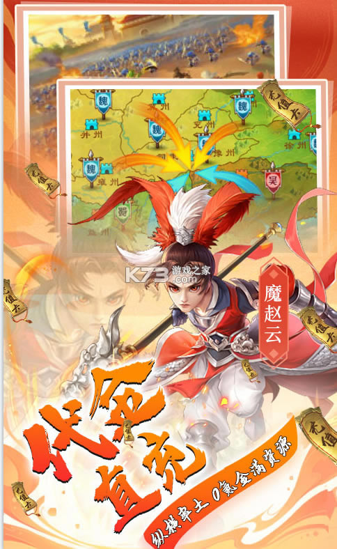 以经典的策略类游戏SLG为核心玩法,同时加入了大量卡牌游戏的推图和卡牌收集的游戏元素,为玩家营造一个战火不断的三国世界。玩家将扮演三国时期的城主,生产战略资源、笼络名士猛将、征召百万雄兵参与到十三州的领土争夺中