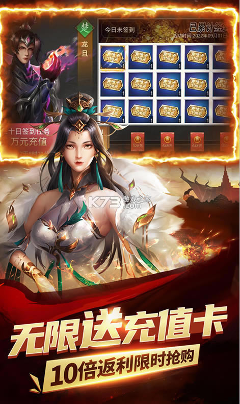融合日常休闲策略玩法与小局制多人对战攻城的战国策略游戏,独特设计的战斗机制与攻城机制,可轻松搜集历史名将,与多人对战,攻城略地乃至一统天下,提升官职,封王称帝。现在更有登录送红将、红装、专属武器的超级VIP福利
