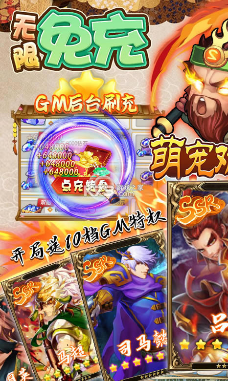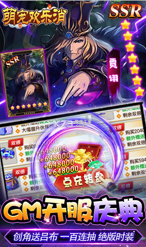 《萌宠欢乐消》送648充值福利,你将会遇到各种各样的武将,在这里小店满满,带来全新别样的三国,另类的游戏剧情,全新的游戏体验感,欧气爆发月卡1元购买,福利满满还有张飞吕布赵云开局,领到手软。