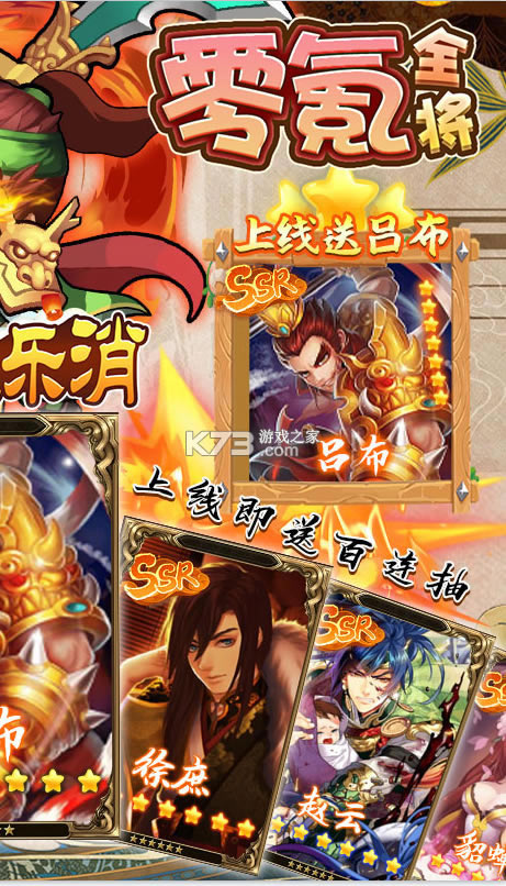 ★海量充值券上线就送,丰富钻石资源领不停,还有神将张飞、吕布 赵云助力开局。