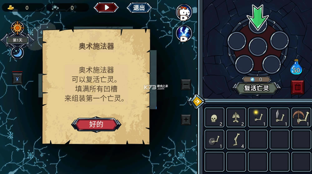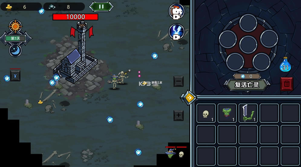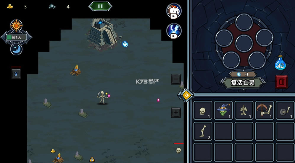建造亡灵实验室来培养身体部分,建造技术魔法装置来升级死亡士兵。