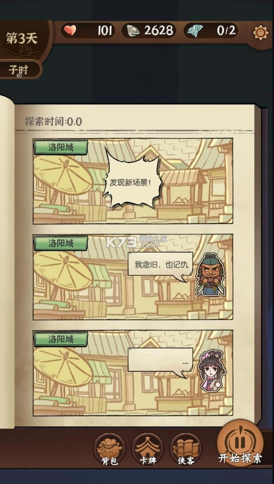每位侠客都有自己的牌库,灵活搭配,打造属于自己独一无二的侠客。在冒险的途中,侠客们有概率沾染怪癖,不同的癖好将进一步影响他们的探索和战斗能力。