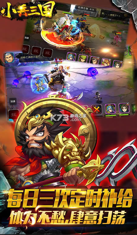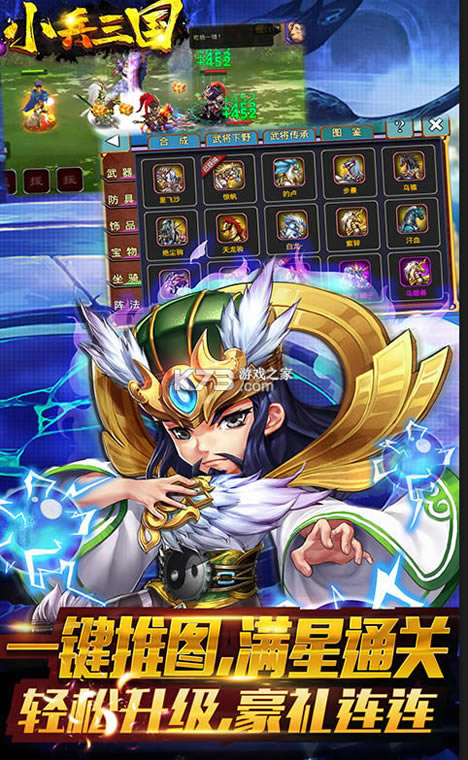 q版三国题材策略卡牌手游,游戏中将三国战役设计为高挑战性的关卡,玩家在游戏中可以通过招募喜爱的三国英雄,自由的组合,挑战击败关卡首领,获取强大的装备。