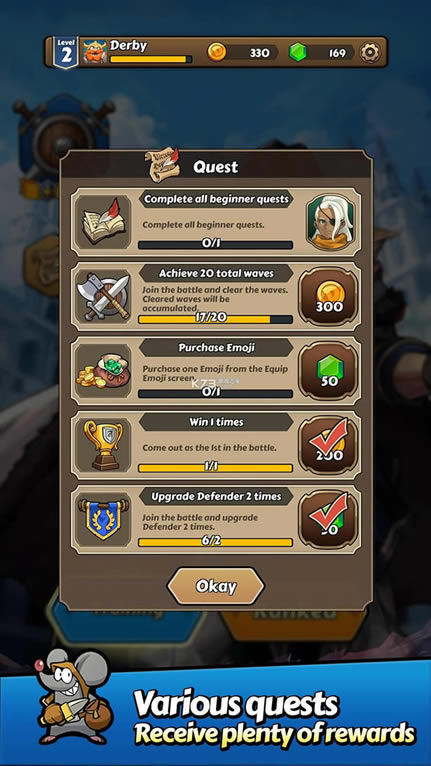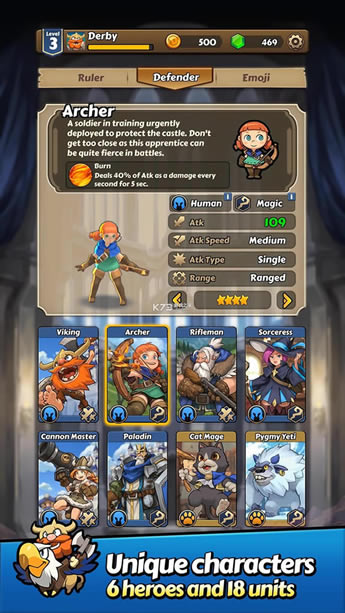 《防守德比(Defense Derby : Rule the Kingdom)》是款生存塔防类手游,游戏中拥有华丽的手绘画风,同时还有大量不同类型的英雄职业,你可以强化单位的级别,搭配不同的英雄阵型,去阻击敌人并守卫你的城堡。