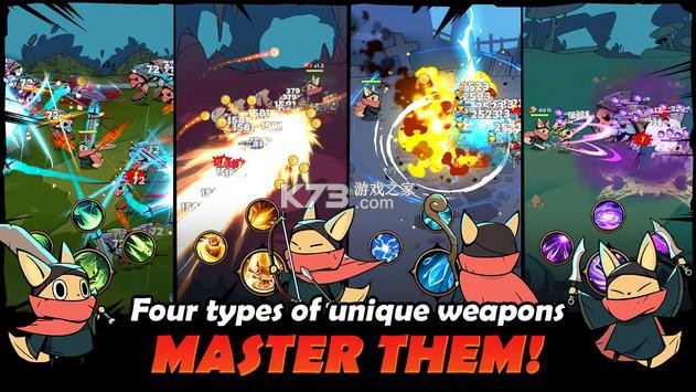 收集、尝试并掌握所有四种类型的武器,让您的英雄立于不败之地!成为你那个时代的英雄!