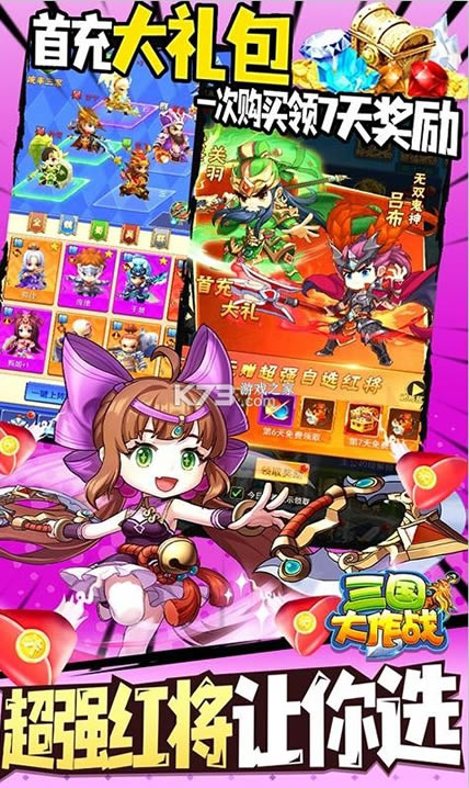 ★首充大礼包,一次购买领7天奖励,更有超强红将让你选(鬼神吕布、武圣关羽、魏武帝曹操、大都督周瑜4选1)