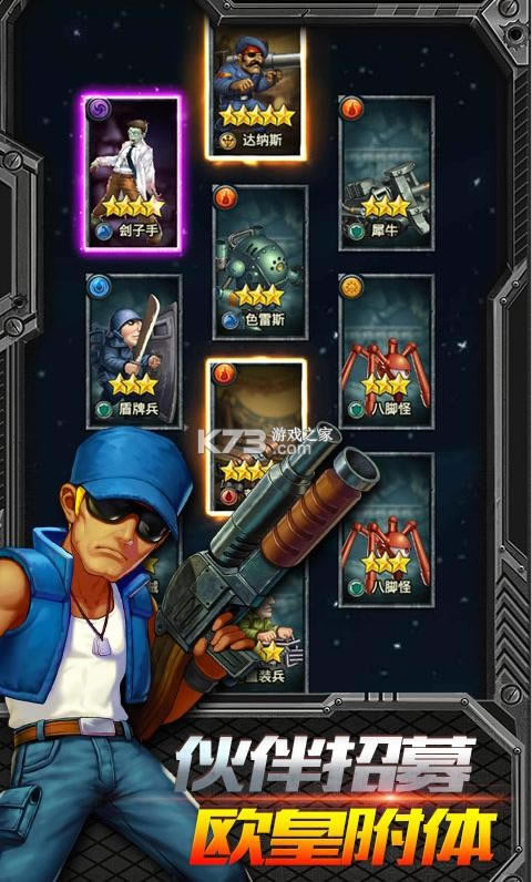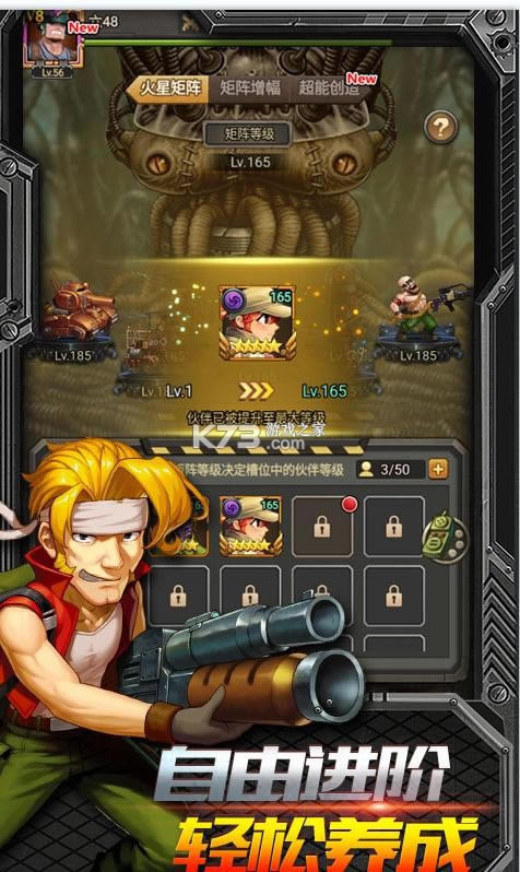 这里有丰富的合金角色,甚至连小兵都能培养,只有你想不到的,没有你抽不到的!这里有你没听过的合金故事,大反派莫顿的过往,会波动拳的俘虏老头的真实身份等你来一探究竟!这里还有我们对合金弹头永远不变的热爱和激情,少年,行动开始了,快来召集你的合金伙伴,加入我们的征伐队伍中吧!