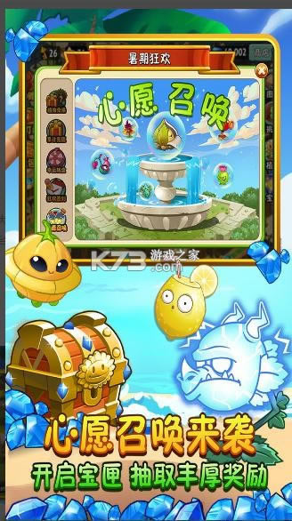 全新“心愿召唤”活动上线,许下愿望,在当期奖池中选择想要的植物,打开潘妮的神秘宝匣子,抽取心仪的新植物吧!通过完成每日任务和获取礼包可以都获得代抽券,累计许愿达到一定次数,获取丰厚的奖励。培养新植物到达指定阶段,还有珍贵的植物碎片和代抽券可以领取哦~