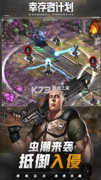 另外:幸存者计划→协同作战,战斗不停歇,通过官员召集,迁城等道具的合理使用,这就是RTS策略游戏的魅力,“幸存者计划”可以让玩家在看到有成千上万的行军路线,没错就是超恢弘的战斗场面以及全服争夺母巢之地的刺激沙盘战场,抵御虫族 重建家园;