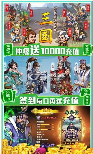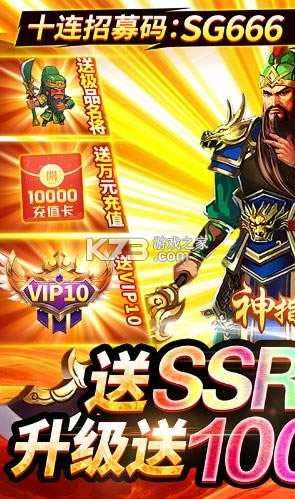 《神指三国》暑期必玩的放置卡牌的游戏,上线领取万元真充卡,每日签到享受征战四方的快感,升级就送五星神将,永久保值不再翻车,必出五星稀有的SSR充值卡,签到每日再送充值,尽情的体验三国的游戏时代。