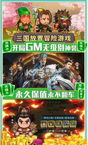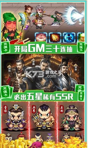 暑期必玩,共赴狂欢!全新放置像素卡牌《神指三国》,全新魔神将携手史上最强福利强势来袭!开局送GM神装全套礼包+VIP10+38888元宝+200万金币。我们承诺提供最多最好的福利,迎开服庆典,升级即送10000真充卡,累计送10000000元宝,VIP直升SVIP霸主。每日签到必得真充卡、5星英雄碎片、进阶丹等奖励。让你尽情享受征战四方、一统河山的快感!