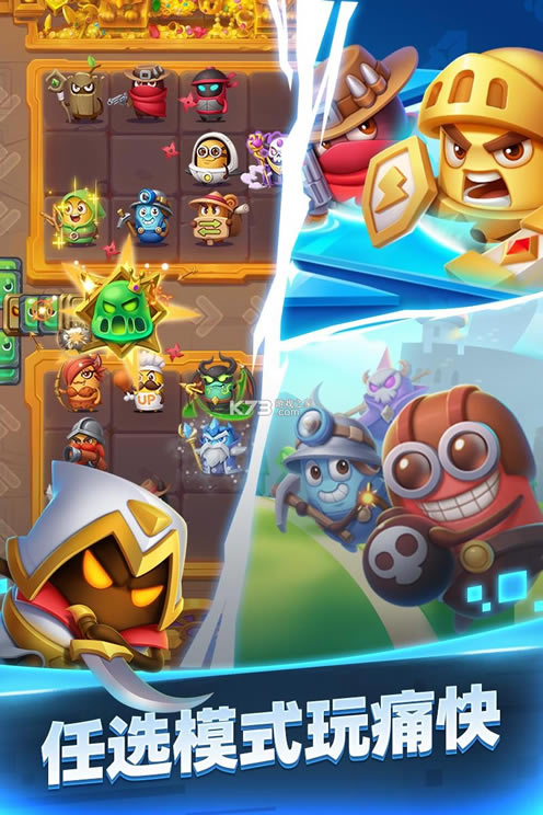 我们的英雄通过合成升级提升战力,但升级后会随机变成不同的英雄,战局中步步充满着机会和风险。每场比赛都在考验你的勇气和智慧,你敢挑战吗?召唤你的冒险小队,升级你的土豆英雄,一起来保卫土豆王国吧!!