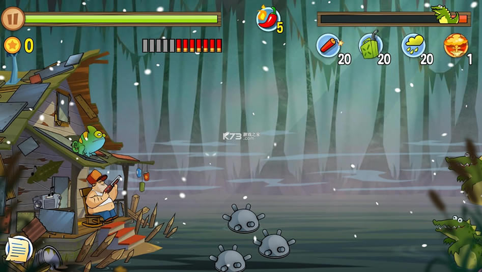 沼泽动物要围攻小木屋,而小木屋的主人公大叔,拿起枪来保护小木屋这片小领地;