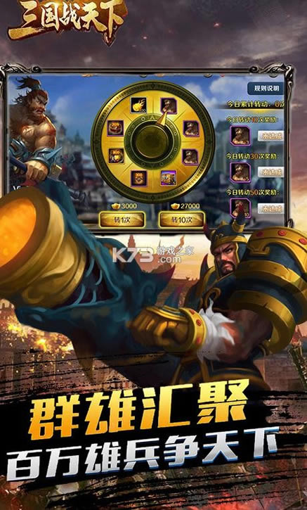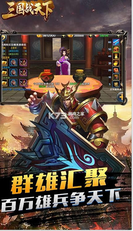 三国战天下以经典的策略类游戏SLG为核心玩法,同时加入了大量卡牌游戏的推图和卡牌收集的游戏元素。
