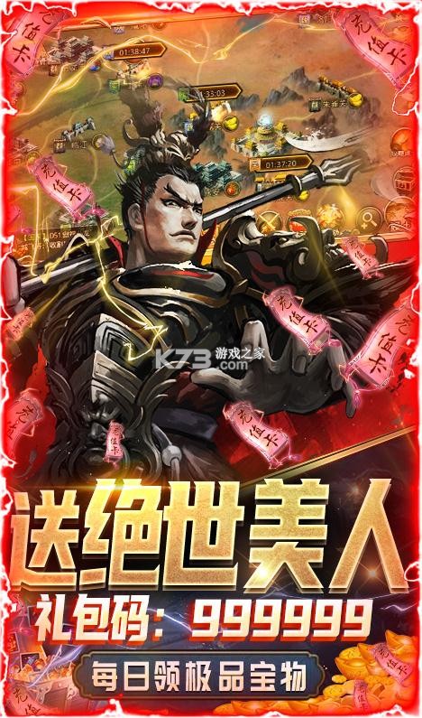 3.上线即送银两28万!首充送吕布,三日登陆送赵云!七天登陆送孙尚香!更多豪华礼包等你来领取!!