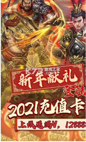 1.上线即送满V,2021元充值卡,元宝128888,金币2888888!