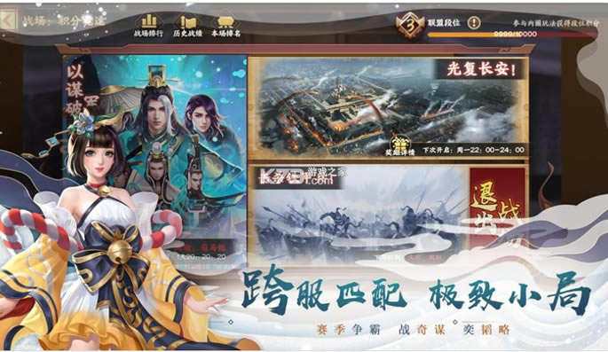 小局制跨服匹配赛,多地图、多赛制,以联盟为单位报名参加,以策略攻伐为主要手段,胜者不但有丰厚的道具奖励,还将获得段位积分,提升联盟段位排名。