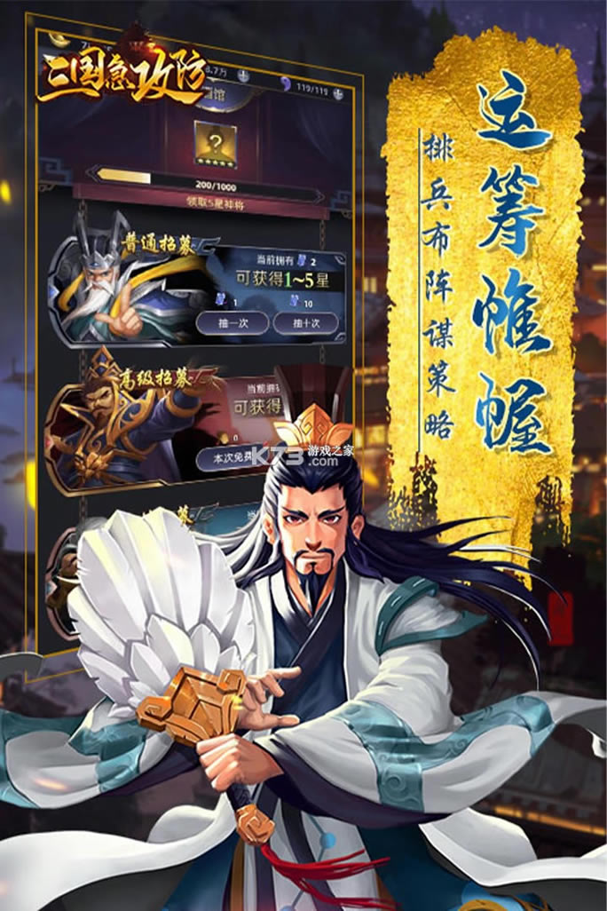 游戏结合了策略、培养、战斗,每个武将也都各具特色,玩家在塔防战斗的过程中可以充分发挥每一个武将的特点,让自己的武将发挥莫大的作用。