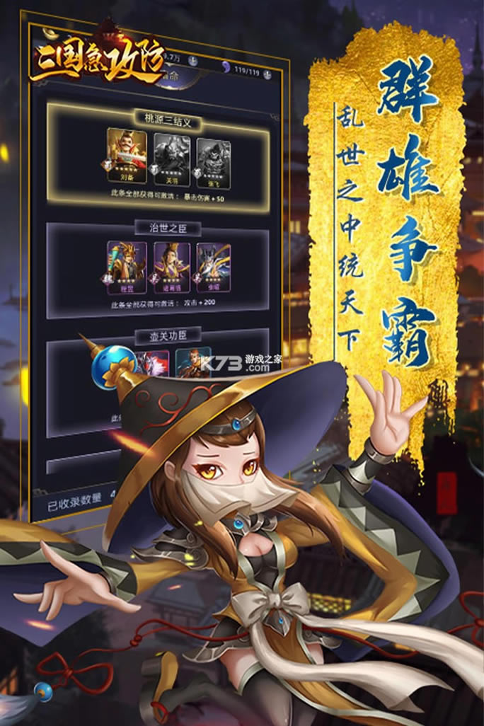 多种养成主线、数十位名将深度养成、千余种阵容搭配,构建了丰富多彩的塔防三国世界,诠释了全新的塔防策略卡牌手游!