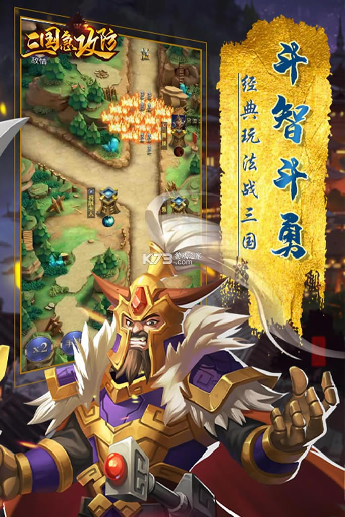 欢迎来到《三国急攻防》让我们一起回到那个英雄辈出的三国时代。在这里战力将不再是衡量实力的唯一标准,阵容的搭配和防御塔的布置,将成为决定战斗的关键。即时战斗,超具策略性,超级烧脑。数百个武将等着你来挑选,数百个关卡等着你来挑战,数十种玩法等着你来体验,快快来组建你的军队一统天下吧。貂蝉妹妹在等待他的盖世英雄!