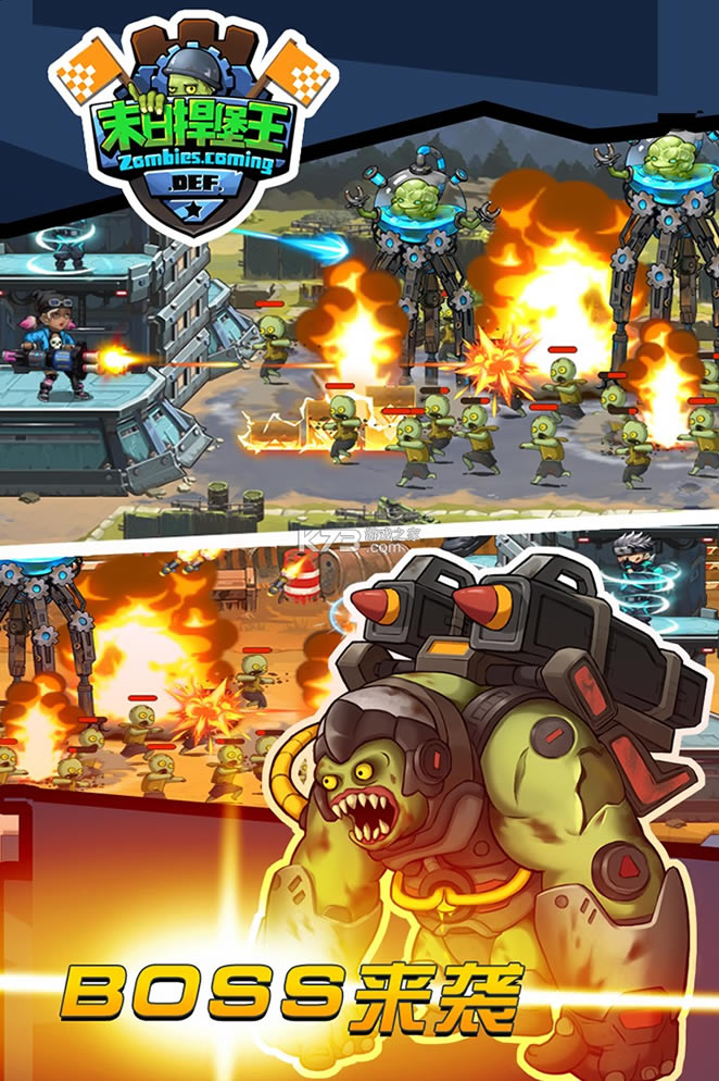 在《末日扞堡王》游戏里,玩家可以招募伙伴一起对抗僵尸狂潮,保卫家园不受攻击!不同的伙伴英雄有特定的属性技能,消灭所有入侵的僵尸闯关成功后,建造城堡可以提升伙伴的攻击力。