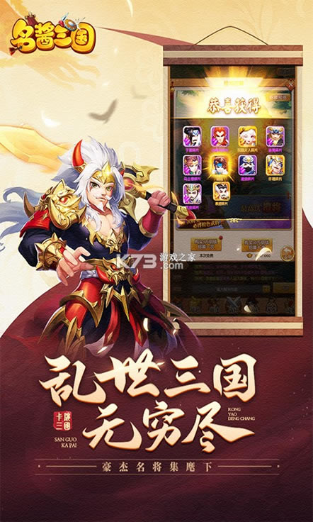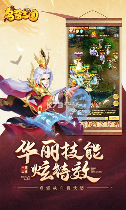 完美植入了传统三国策略卡牌游戏的各类玩法。里面的人物卡牌都进行了精心手绘,立体的效果给人十分良好的视觉感受。画面唯美清新,人物帅气Q版,颠覆以往的威武形象,带给玩家不一样的视觉感官。