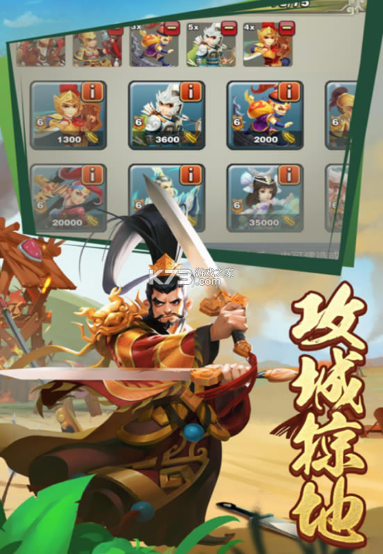 作为一款以coc类战争三国塔防策略手游,游戏里真实还原三国时期的250余座名城关卡,圆您一个三国过关斩将之梦。在游戏中,每位主公都将从一个初到三国的无名氏开始,一步步熟悉每个兵种的特性特配,城防武器的防卫范围,建筑资源的摆位搭配,特有名将的属性养成,然后带领自己的军队名将,守卫自己的城池关卡,掠夺敌人的粮草金钱,最后攻城略地抢资源,成就三国天命之主。
