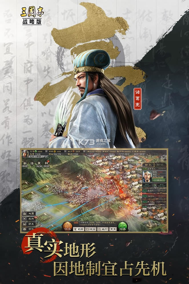 光荣特库摩正版授权,呈现真实古三国战争。你将征服这百万格沙盘疆域,搭配五大兵种以少胜多。灵活指挥行军转向截击,因地制宜布局攻防。这是策略至上公平对决的舞台,我们承诺不卖vip不卖资源不卖兵卒不卖装备!欢迎来到千万战略家的真实战场!