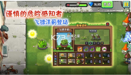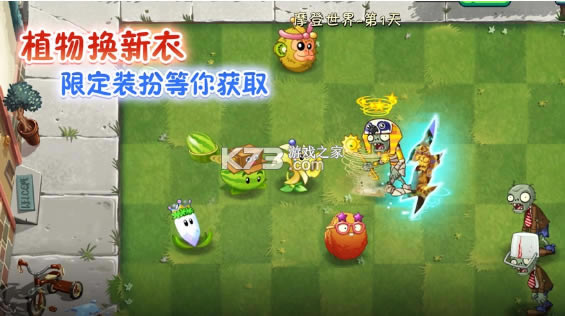 3、植物不仅有攻击还有防御功能,努力消灭所有的僵尸,通关有奖励。