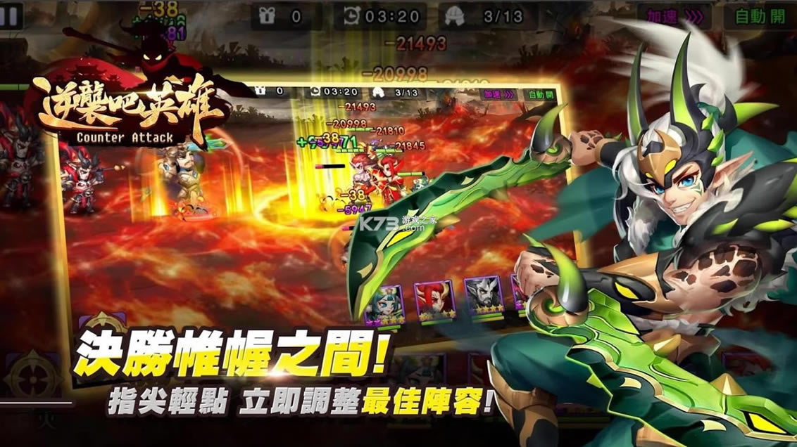 别以为在战斗前佈阵完毕,战局就会按照计画进行!战场中随时有可能从后排突入敌军,即时操作每位武将移动,闪招、围殴、放大招,单手逆转战局!