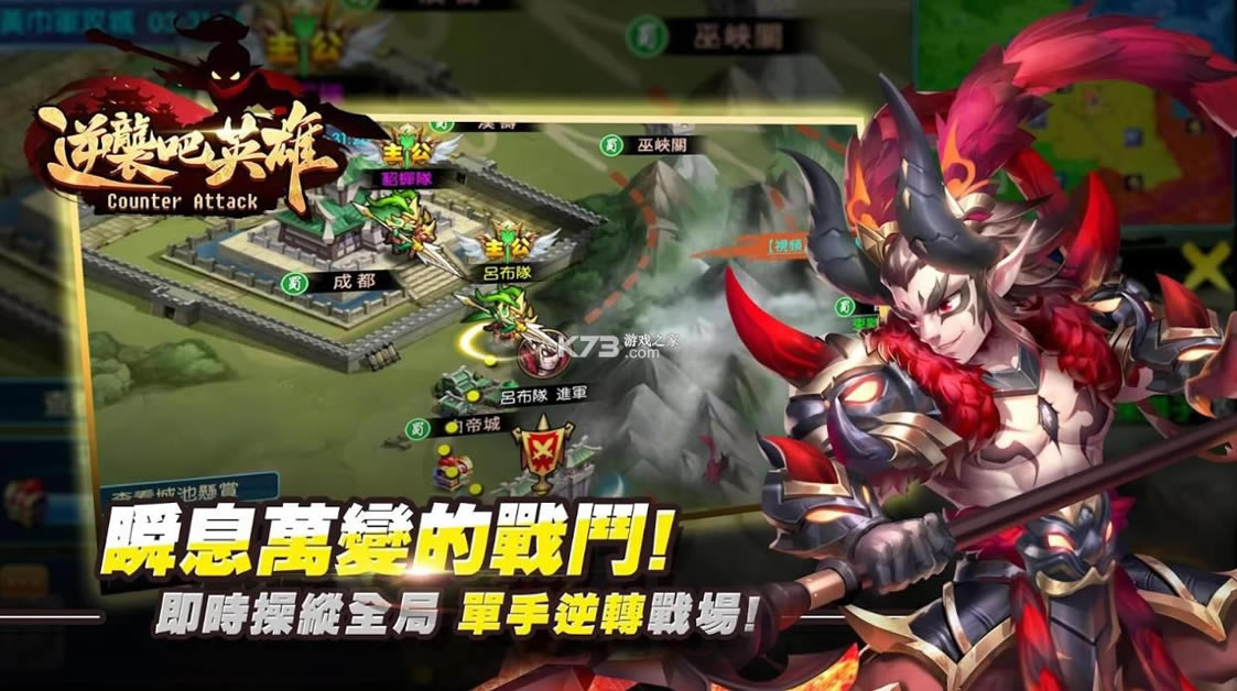 《逆袭吧英雄我就战》经典的人物形象,以三国为背景的玩法,全新的体验快速的来觉醒,在地图上来探索开启即时的战斗,在场景中随意的变化和移动,逆转战局的玩法。