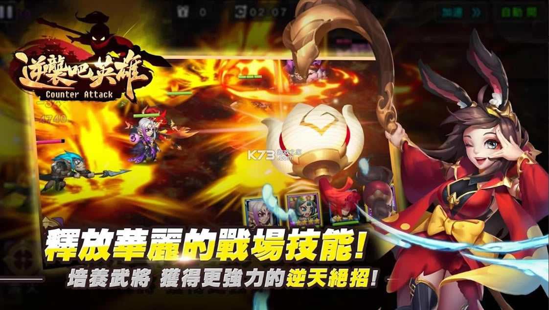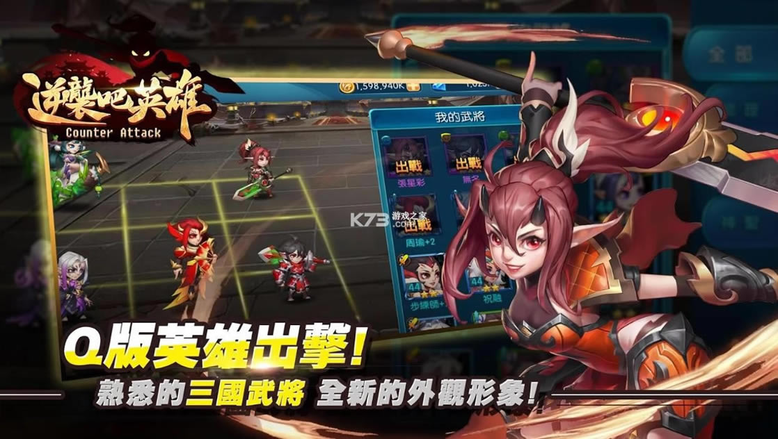 《逆袭吧英雄》是一款Q版风格的动作类卡牌类手机游戏。游戏背景以三国KUSO题材为主轴,玩家们在旅途中将一路网罗三国武将,进行一段疗癒人心却又紧张刺激的笑闹冒险。