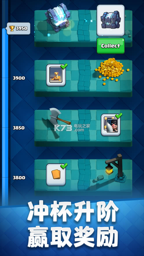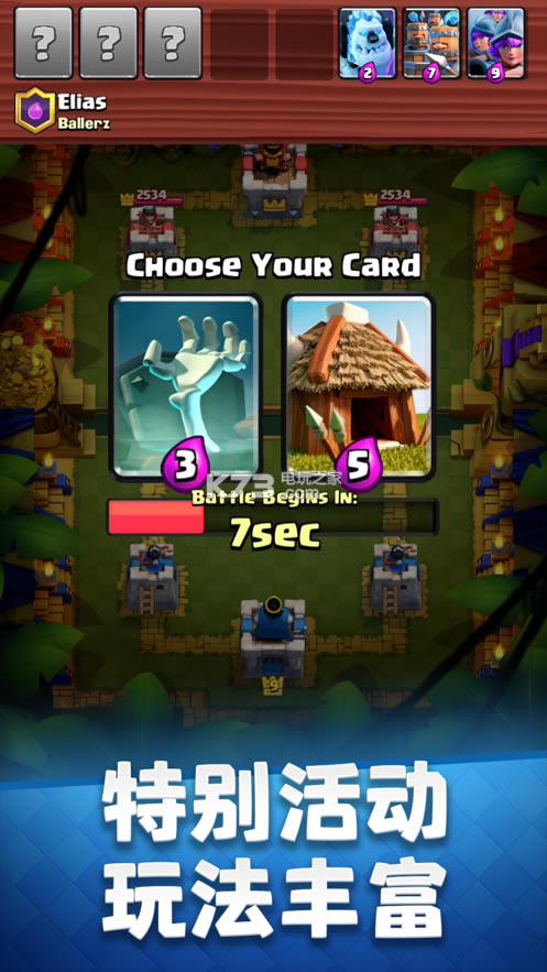 与全球各地的玩家,随时开启一场酣畅淋漓的爽快对决,摧毁对方国王塔,赢取宝箱解锁奖励,并在世界排行里夺得荣耀!