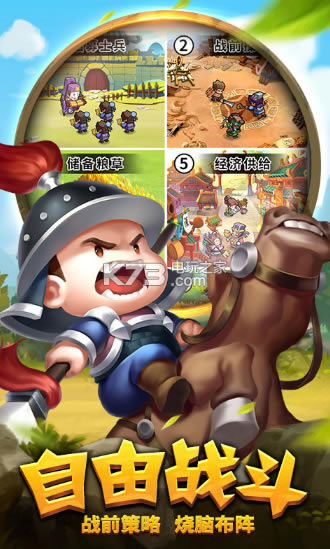 2、像素风格游戏画面,武将养成pk战斗,即时战斗巅峰热血不断,每天各路高手陪你一起战斗到底。