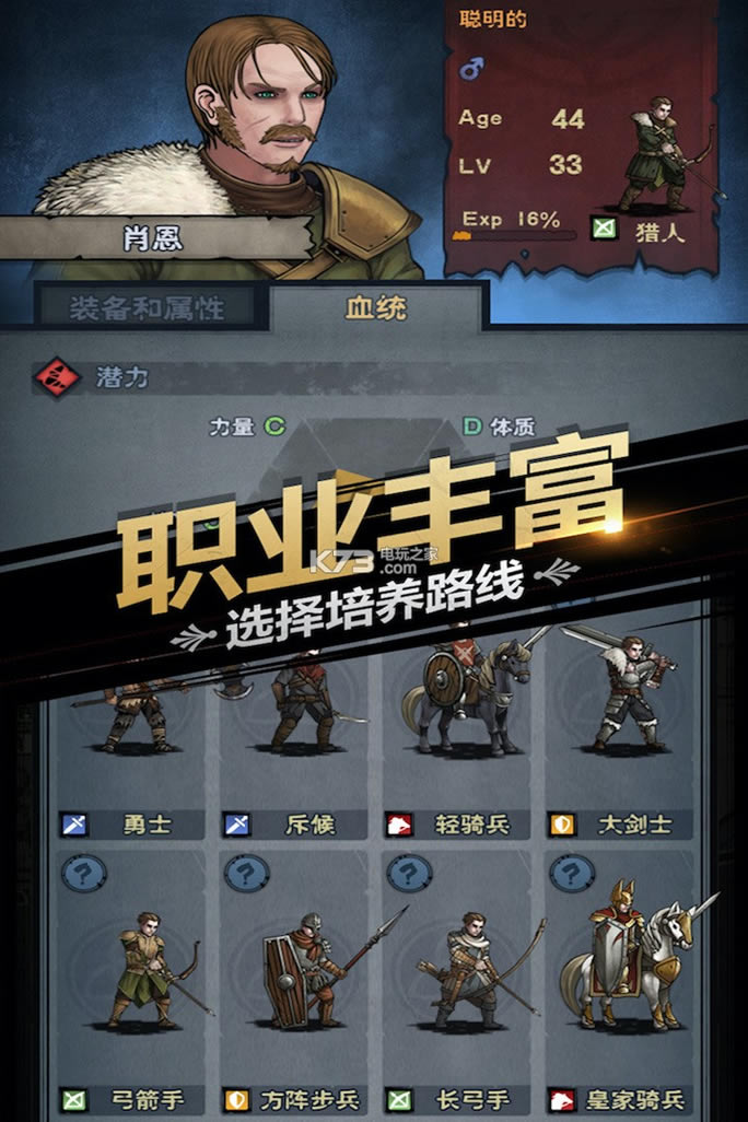 在游戏中,玩家将走遍加尔提兰大陆,带领佣兵团驰骋沙场,游走于几大势力之间;攻城略地壮大实力;繁育后代,培养继承人,传承百年家族荣耀!