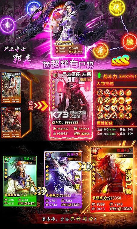 单笔充值648元:钻石十连符*5、武将经验丹*5、点将符*28