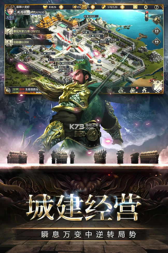 热血三国霸业,争夺帝王之座!《帝星战魂》是一款匹配竞技式的城战策略手游,8-16名玩家将匹配在同一张三国大地图中互相争斗,败者出局,胜者为王!过程中可使用空城计、奇门八卦等计策助阵!可一人之力独打天下,也可缔结盟约共同作战!本局失败无须烦恼,再来一局完成统一!