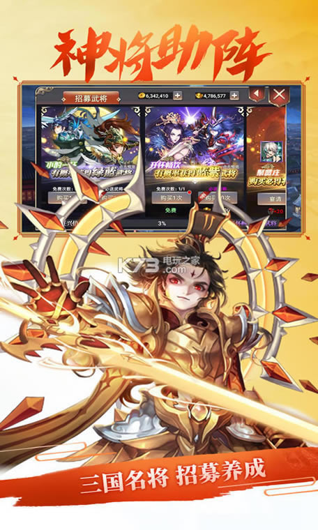 《醉游三国星耀版》以推图为主线,在借鉴了刀塔传奇战斗模式下,独创援军系统,打破了传统的5人战局。新增3个援军位置,让玩家精心培养的武将有了更多的勇武之地。增加援军系统让更多的武将上阵杀敌,合理的配置援军,可以让你做到后发制人,感受绝地反击的快乐。