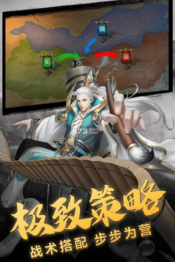 用精美的美术刻画出了武将生动的造型与动作,特色技能策略百变,周瑜配诸葛,关羽配曹操,打造心目中完美的英雄阵容。
