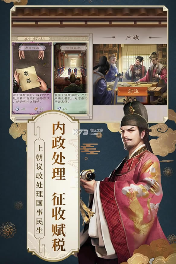 《明朝风云》是一款以明朝为背景的古代放置经营手游。在游戏里,你可把名臣名将招致麾下,做自己的左臂右膀;开疆拓土,打造一个强盛王朝;收集历史美人,展开专属于你的爱情故事;更能出海通商,与各国联姻外交,探索异域风情。
