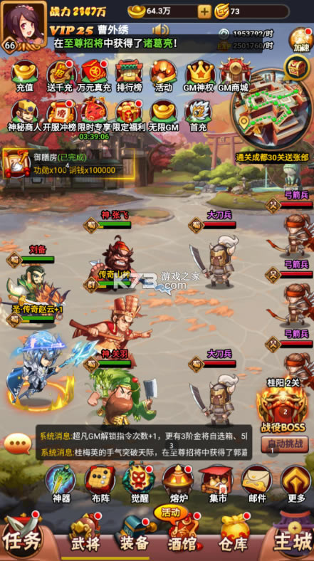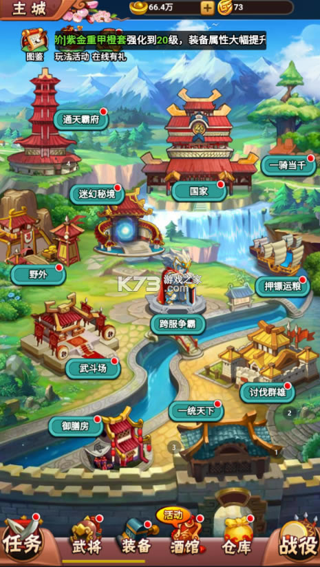 集武将,养神宠,三国休闲生活就此展开,日久天长还会不知不觉有神兵、圣兽、羽翼傍身,做一个轻松快乐又拉风炫酷的主公指日可待。