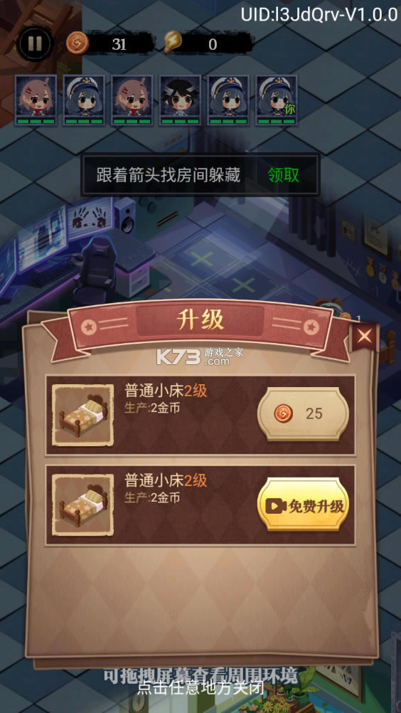 猛鬼别抓我是最近一款很火的3D休闲策略塔防类手游。相信大家此前一定听说过突然爆火的猛鬼宿舍吧,这款游戏就是结合了该游戏的全部玩法,并且优化了游戏画面和操作,给大家更好的游戏体验。在这款游戏中,玩家可以拥有更好的感官体验,不管是游戏角色还是游戏地图、道具都更加精致了,采用了3D建模制作,而且玩家可以更自由的在房间中摆放自己想要的道具,但是大家也需要讲究一定的技巧,不要一味的沉浸在游戏世界中哦。更真实的3D房间,真实的塔防体验。玩家在这里同样可以躺平开始你的发育,但是稍稍不同的是这款游戏目前还不支持联机互动,但是游戏的联网模式已经有入口了,大家可以期待一下哦。另外这款游戏有着非常多的角色,但是需要大家看广告才能获得,很麻烦,但是大家不要担心,本次小编带来的就是这款猛鬼别抓我破解版,该版本已经帮助玩家破解免广告获得奖励,大家直接点击自己想要的角色就可以直接使用哦,而且游戏中也能够直接通过免广告升级道具,获得更好的游戏体验哦。感兴趣的你还在等什么呢,快快前来本站下载体验一番吧。