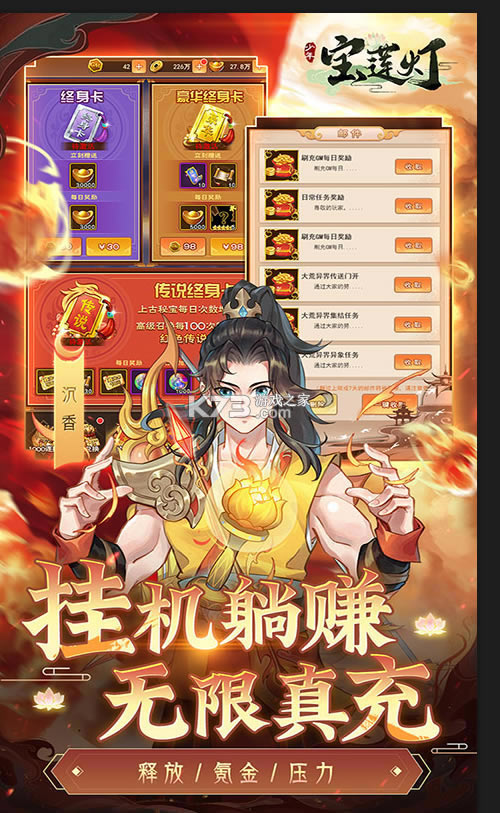 《少年宝莲灯》无限真充送100连抽,全民满红将斗战胜佛等你来领,不肝不氪,直购基金免费刷充,挂机躺赚领取终身卡,领取gm科技全新英雄莅临,策略多变立刻加入我们,探索这个全新的世界,国风放置策略的游戏。